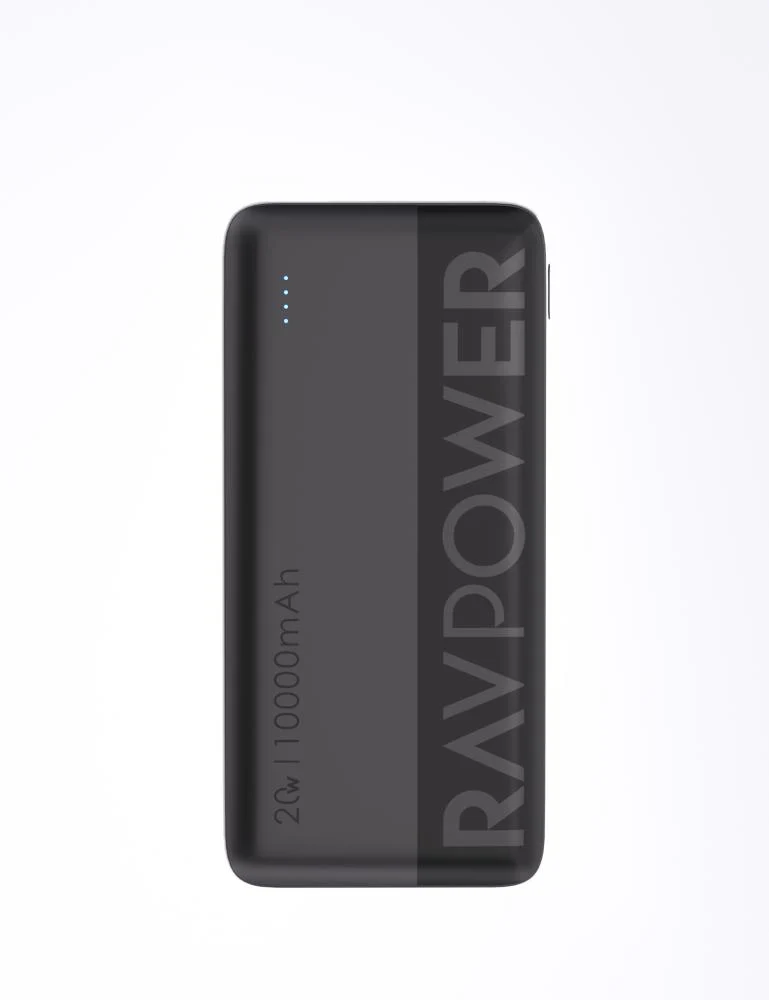 بطارية راف باور بقوة 20 واط بسعة 10000 ملي امبير منفذين تايب سي و منفذ يو اس بي - اسود