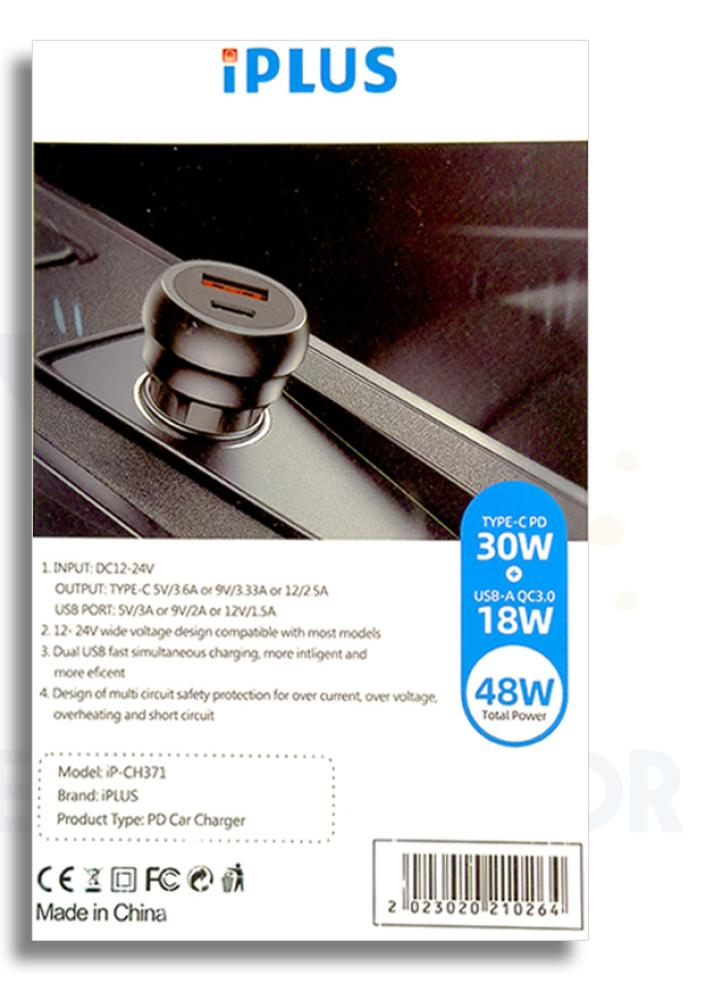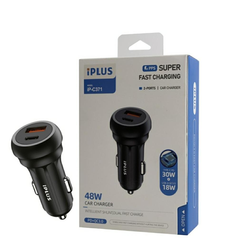 شاحن سيارة iPLUS بقوة شحن فائقة 48 واط - منفذين TYPE-C PD و USB-A QC3.0